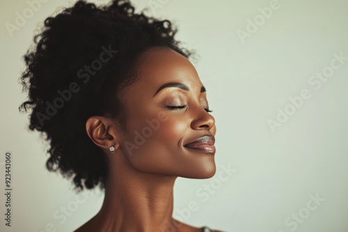 A close up of a black woman's face with her eyes closed