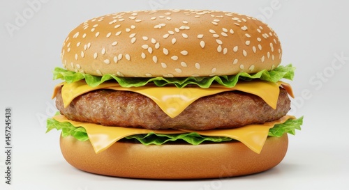 A close up of a double cheeseburger with lettuce on a white background in a studio setting