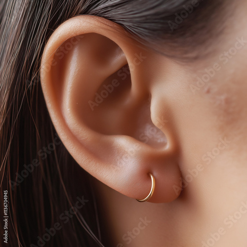 A close up of a woman's ear with earring.