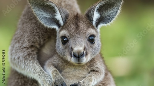 A close up of a young kangaroo looking directly at the camera