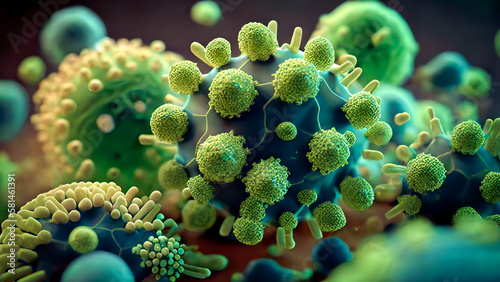 A Close Up of Green 3D Microscopic Bacteria. Generative AI