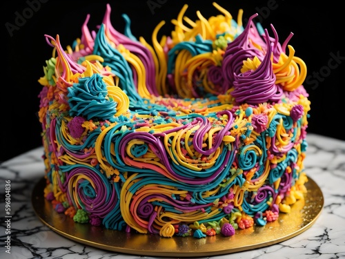 A close up of happy birthday cake for party celebration rich creamy baked isolated