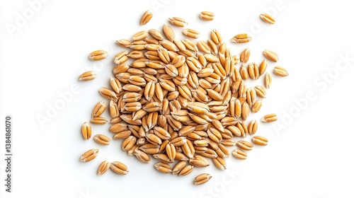 A close up view of a pile of wheat grains scattered on a white surface in a studio setting