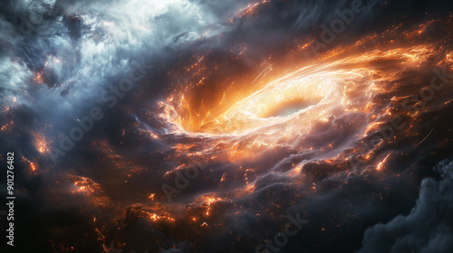 A Close Up View of a White and Orange Gaseous Galaxy in Space. Generative AI