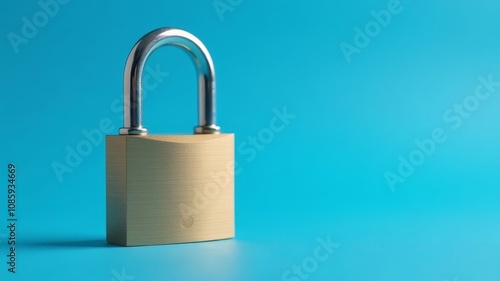 A closed metal padlock stands on a blue background.
