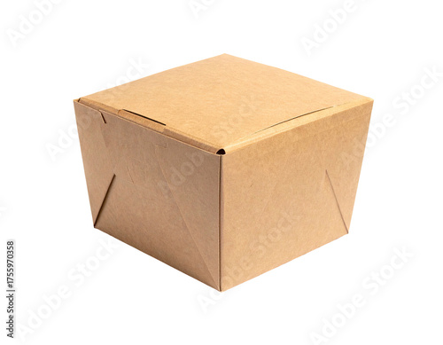 A closed square-shaped brown paperboard box against a black background