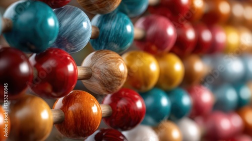 A close-up arrangement of vibrant wooden beads in various colors, showcasing the artistry and playful nature of crafting materials, perfect for hobbyists and art lovers.