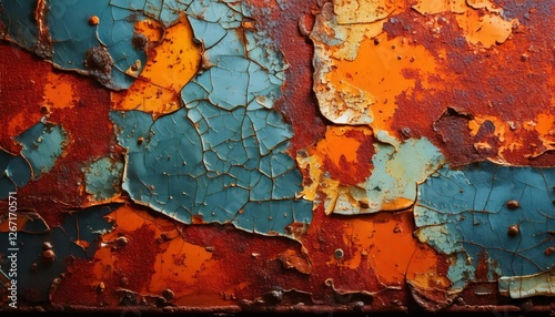 A close-up grunge texture focusing on chipped paint edges and small rust particles background