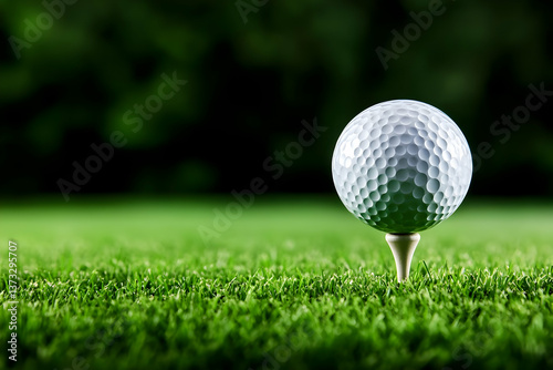 A close-up of a golf ball on a tee, surrounded by lush green grass, symbolizing precision and focus in the game of golf.