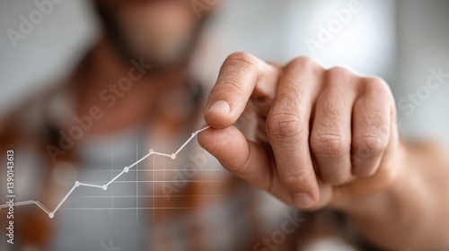 A close-up of a man pointing at a line graph indicating upward trends, symbolizing progress and success in business performance or financial growth.