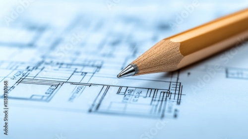 A close-up of a pencil resting on architectural blueprints, indicating design work.
