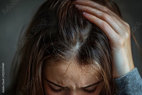 a close-up of a person with a hand on their head and a worried expression.