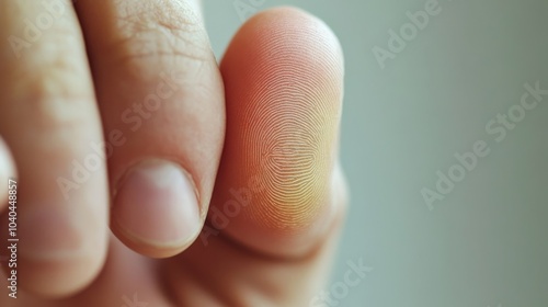 A close-up of a person's fingers showcasing a unique texture and subtle color variations on the fingertip, illustrating human detail.