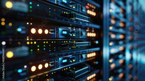 A close-up of a server rack with illuminated network cables and ports, representing the complex infrastructure of network security.