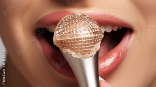 a closeup of a sexy woman eating an ice cream cone, generative AI