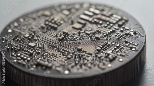 A close-up of a silicon microchip with visible transistors and intricate patterns etched into its surface