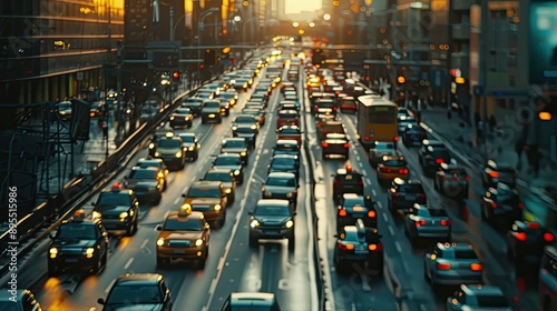A close-up of a traffic jam on a big city road