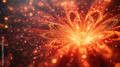 A close-up of bright red and gold fireworks exploding in intricate patterns over a lively celebration