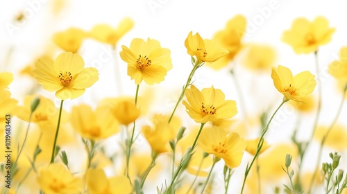 A closeup of bright yellow canola flowers showcasing their delicate petals and green stems isolated on a white background Clipping path included : Generative AI