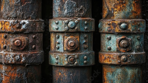 A close-up of rusty pipes stacked in a row, highlighting corrosion details and wear