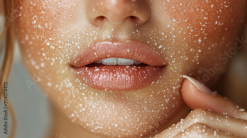 A close-up of someone exfoliating their lips, ensuring soft and smooth lips.