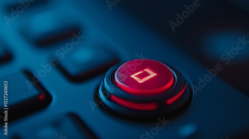 A close-up photo of a red power button on a TV remote control, with the focus being specifically on the power button.