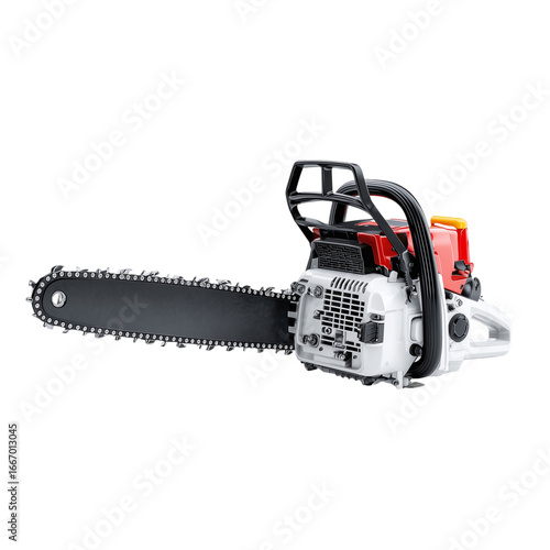 A close-up shot of a robust chainsaw, expertly designed for demanding cutting tasks in the industrial environment.