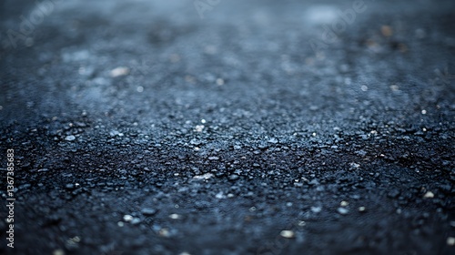A close-up shot reveals a dark textured surface speckled with tiny water droplets reflecting soft light.