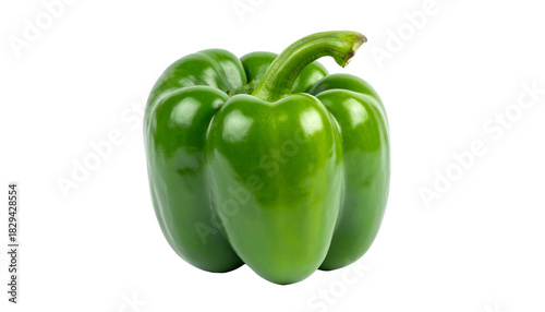 A close-up studio shot showcases a vibrant green bell pepper on a black background