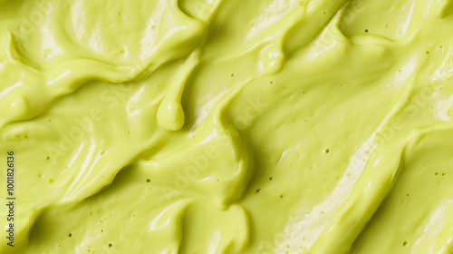 a close-up, top-down view, texture background of bergamot puree spread across the entire frame, featuring its light yellow-green color and smooth texture