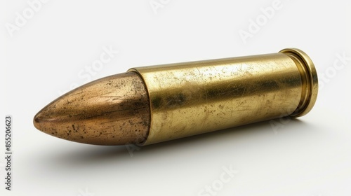A close-up view of a bullet on a white surface, ideal for use in crime scene or detective-themed illustrations