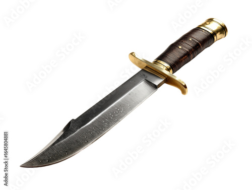 A close-up view of a meticulously crafted knife, the sharp, metallic blade gleaming