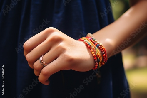 A close-up view of a person's hand with a beautiful ring. This image can be used to depict love, marriage, commitment, or jewelry concepts. Perfect for wedding invitations, engagement announcements, o