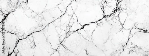 A close-up view of a white marble surface with black veining.