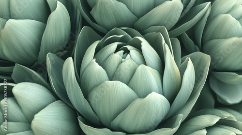 A close-up view of lush, green lotus petals offering tranquility and natural beauty. 3D soft pastel pop