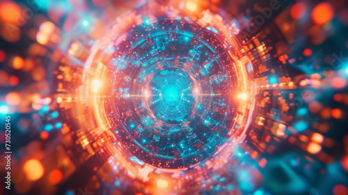 A collage of kaleidoscopic patterns and symbols pulsate and swirl to the rhythm of electronic dance music encapsulating the energetic and futuristic vibe of the genre.