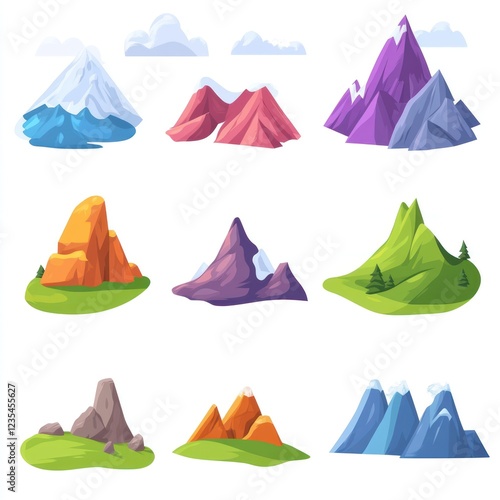 A Collection Of Cartoon Mountains With Varying Colors And Styles