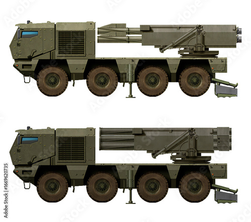 A collection of concepts of MLRS based on the KamAZ-63968 8x8 truck (top: Kamaz-Typhoon Smerch, bottom: Kamaz-Typhoon Uragan). Individual images, in full size, can be found in the portfolio