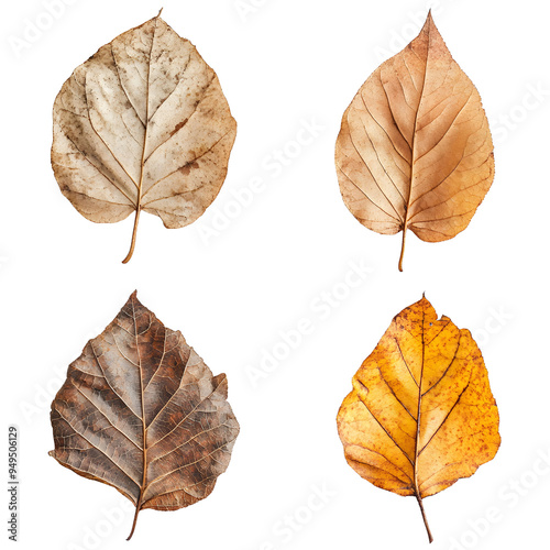 A collection of dry autumn leaves isolated on a white background, capturing the essence of fall with warm and earthy tones..