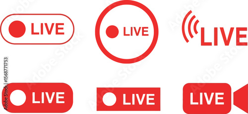 A collection of six different red live streaming icons on white background