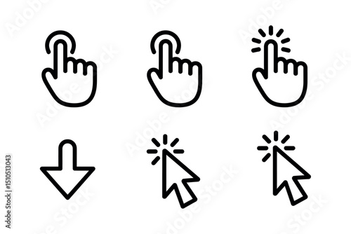 A Collection of Six Minimalist Hand and Cursor Click Icons Design Elements for Websites and Apps