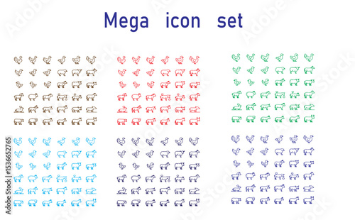 A collection of various icon sets displayed in multiple colors on a white background for design purposes