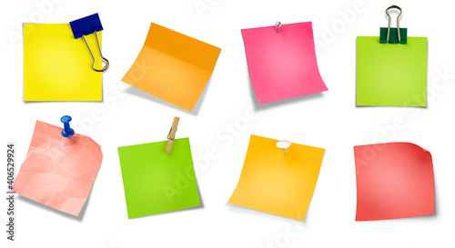 a collection of various paper notes. isolated white background