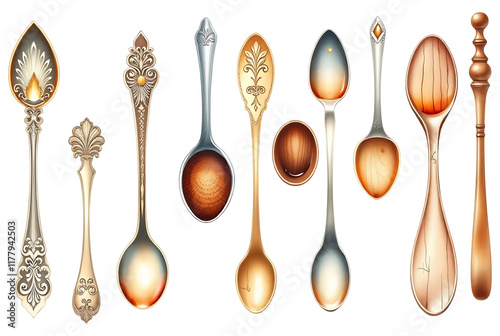 A collection of watercolor coffee spoon illustrations