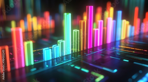 A colorful bar graph with glowing bars, showing the steady rise in business growth, set on a futuristic screen.