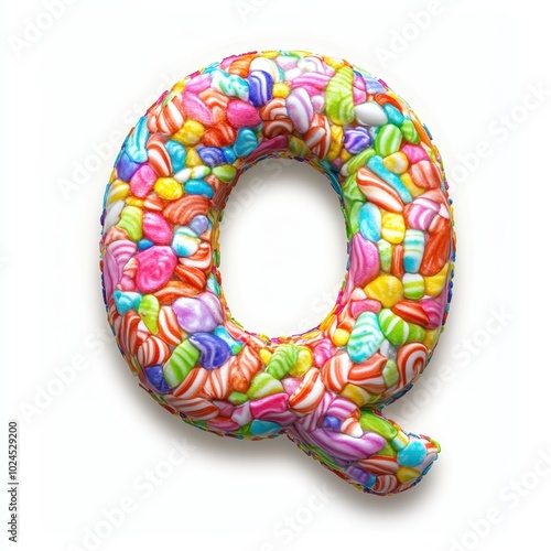 A colorful, candy-filled letter "Q" designed for playful and festive themes.