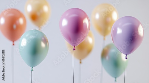 A colorful collection of balloons in pastel shades, creating a festive and cheerful atmosphere.