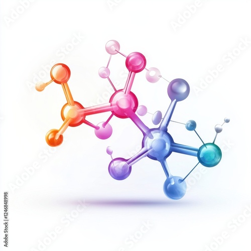 A colorful depiction of molecular structures, illustrating the connections and interactions between atoms in a stylized, abstract design.