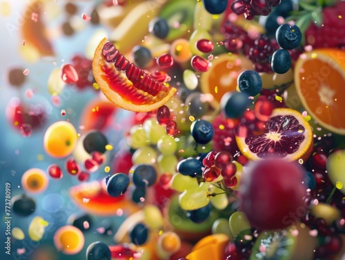 A colorful fruit salad with a mix of oranges, grapes, and blueberries
