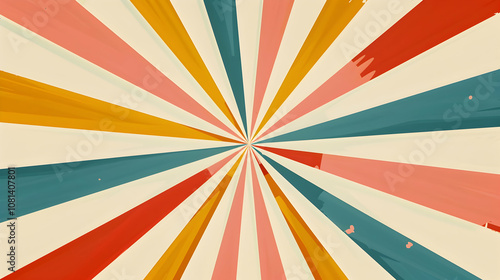 A colorful radial burst design with vibrant stripes radiating from the center.